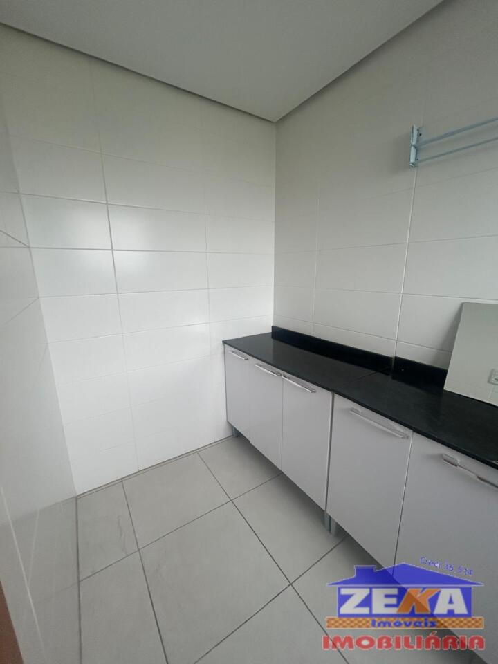 A cozinha é funcional e moderna, com ótimo aproveitamento de espaço, além de área de serviço separada.